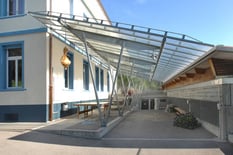 Die Aula ist ein idealer Raum für Vereins- und Privatanlässe. Der 180m² grosse Raum inkl. Bühne (ca. 30m²) bietet Ihnen mit seiner grossen Festerfront einen idealen Blick auf die Alpen. Die Aula ist ausgestattet mit: